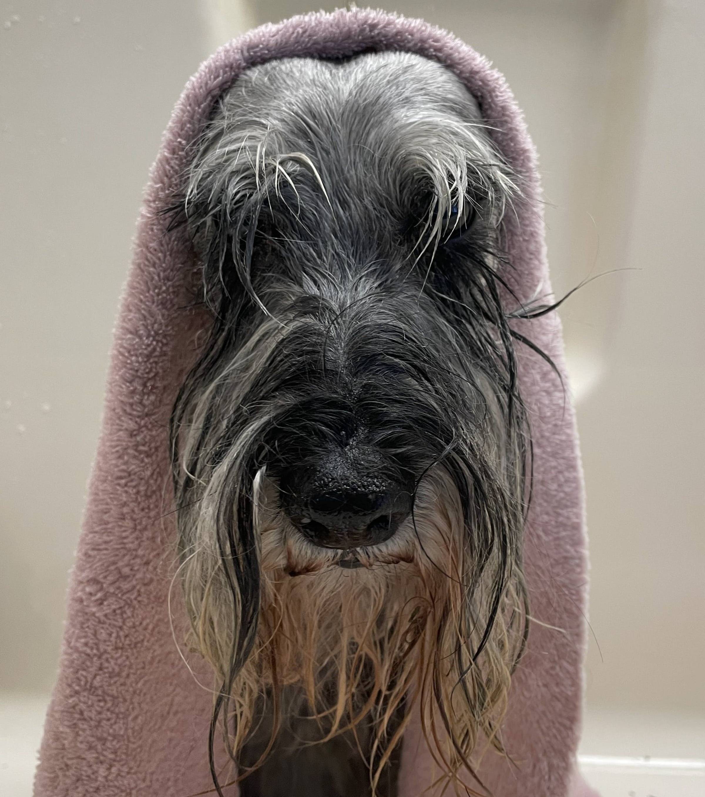 Bathing for Hand-Stripped Coats The Schnauzer Grooming Club Newsletter Facebook Courses Coaching Community Links BATHING. IS. CONTROVERSIAL, and that's ok. The passion behind people’s vehemence about what is right/wrong to do regarding bathing a hand-stripped coat is a sign that it matters to them, and that’s a good thing. Other people WILL disagree with me, some of you may disagree, and that’s ok too. Veteran bathee Carly getting towel-dried at Georjean's. That said, I only give...